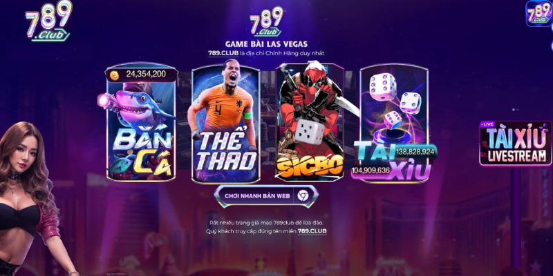 Với hàng loạt các trò chơi như baccarat, xóc đĩa, sicbo và roulette, 789CLUB tái hiện chân thực không khí của các sòng bạc cao cấp ngay trên màn hình thiết bị của bạn. Giao diện hiện đại kết hợp với các dealer chuyên nghiệp mang đến những trải nghiệm thú vị như đang chơi trực tiếp tại sòng bài.